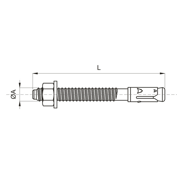 • Монтаж: сквозная установка. Анкер забивается мо лотком в предварительно просверленное отверстие в прикрепляемом материале и бетоне, а затем затягивается гайкой